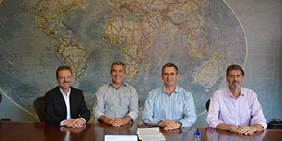 Alexandre Gazzi, Alcides Braga, David Randon e Flavio Santilli na assinatura do contrato - Foto: Divulgação/Arquivo Randon